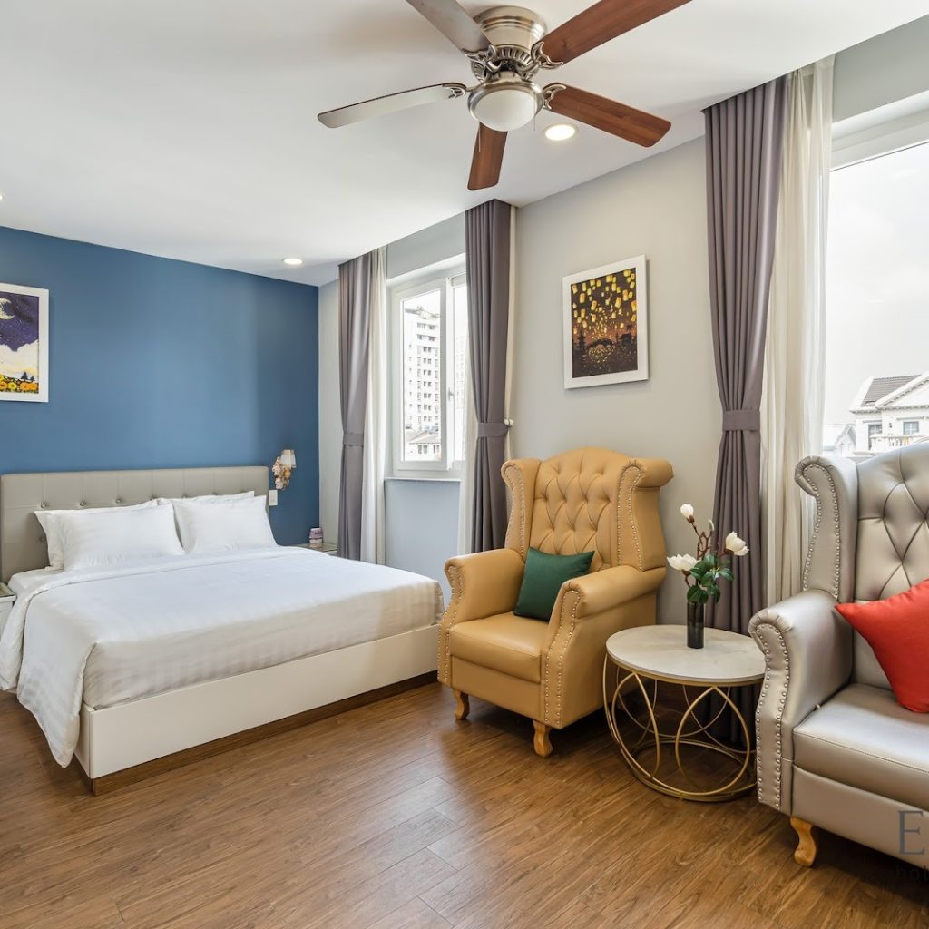 Tại SOL GROUP, chúng tôi hiểu rằng du khách chọn khách sạn gần Crescent Mall thường mong muốn một không gian nghỉ ngơi đủ yên tĩnh để “nạp năng lượng” sau những giờ di chuyển, mua sắm. Vì vậy, không gian phòng được thiết kế theo hướng gọn gàng, tinh tế, tạo cảm giác thư giãn ngay khi bạn bước vào.